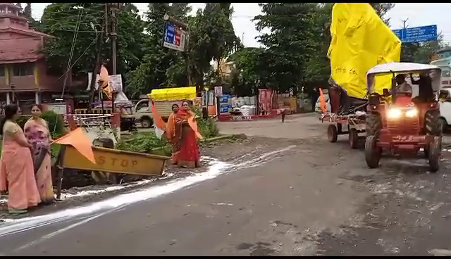 विगत 2 महीने पूर्व बरसात के कारण जीजामाता चौराहे के बाजू की बाउंड्री वॉल पूरी तरह से डर गई जिसके कारण अमरावती रोड हाईवे पुलिया का एक हिस्सा डसने की वजह से बहुत बड़ा गड्ढा हो गया कोई सड़क हादसा ना हो उसको देखते हुए महिला कांग्रेस ने वाहन चालकों को झंडी दिखाते हुए रास्ता दिखाया महिला कांग्रेस के अध्यक्ष सरिता भगत ने कहा कि 10 चक ट्रक उसके बाजू से गुजर रहे हैं किसी भी वक्त बड़ा हादसा हो सकता है जिसको देखते हुए महिला कांग्रेस द्वारा वाहन चालकों को रास्ता दिखाने का काम किया गया ताकि कोई बड़ी दुर्घटना ना हो और इसके साथ ही विरोध प्रदर्शन भी किया गया इसके साथ ही महिला कांग्रेस ने भारतीय जनता पार्टी पर भ्रष्टाचार और लापरवाही का आरोप भी लगाया है