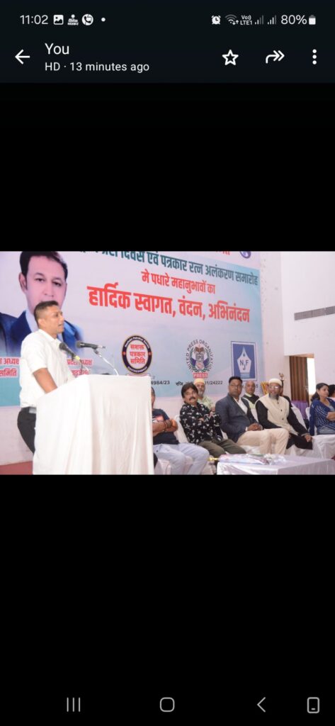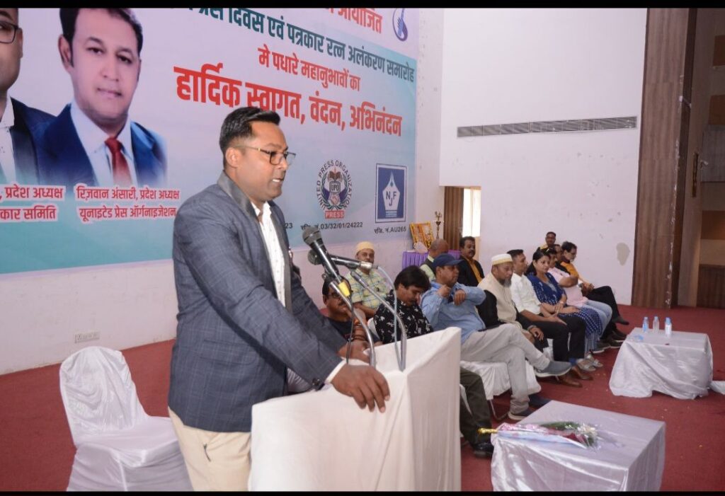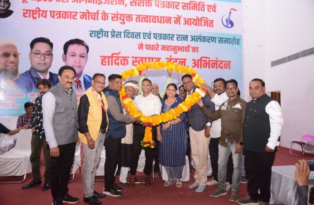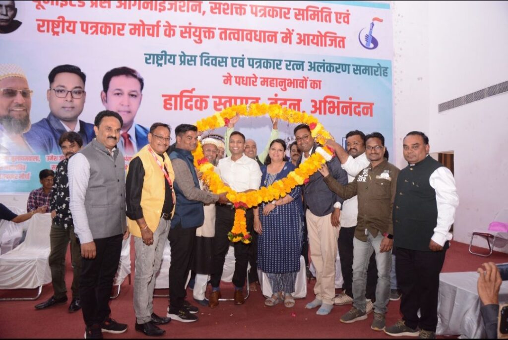 बुरहानपुर। यूनाइटेड प्रेस ऑर्गेनाईजेशन, सशक्त पत्रकार समिति एवं राष्ट्रीय पत्रकार मोर्चा के संयुक्त तत्वाधान में 16 नवंबर को राष्ट्रीय प्रेस दिवस परमानंद गोविन्दजीवाला ऑडिटोरियम में भव्यता से मनाया गया है। सर्व प्रथम मां सरस्वती एवं माखन दादा के तेल चित्र पर माल्यार्पण कर दीप प्रज्वलित किया गया, तत्पश्चात् मंचासिन अतिथियों का भव्य स्वागत किया गया। जिसके बाद पत्रकार मनोज अग्रवाल ने राष्ट्रीय प्रेस दिवस के बारे में जानकारी देते हुए कहा कि यह दिन देश में एक स्वतंत्र और जिम्मेदार प्रेस की उपस्थिति का प्रतीक है। प्रेस काउंसिल ऑफ इंडिया भी भारतीय प्रेस की गुणवत्ता की जांच करती है और पत्रकारिता गतिविधियों पर नजर रखती है। कार्यक्रम अध्यक्ष के रूप में शामिल हुए एसडीएम पल्लवी पौराणिक ने पत्रकारों को संबोधित करते हुए कहा कि सबसे बड़ी बात पत्रकारिता को जीवित रखना, क्योंकि यदि पत्रकारिता जीवित है, तो आप और हम जीवित है। उन्होंने कहा कि जितना महत्वपूर्ण है नंबरों के दौड़ में आगे बने रहना, उतना महत्वपूर्ण है पत्रकारिता को जीवित रखना। वहीं मुख्य अतिथि नगर पुलिस अधीक्षक गौरव पाटिल ने भी पत्रकारों को संबोधित किया और कहा कि पुलिस और पत्रकार समाज के अभिन्न अंग हैं, जो कि लोगों को न्याय दिलाने का कार्य करते हैं। उन्होंने कहा कि वर्तमान परिप्रेक्ष्य में सोशल मीडिया आने से खबरों की सत्यता एक बड़ा चैलेंज हो गया है। हालाकि उन्होंने सोशल मीडिया का प्रभाव होना भी बताया। वहीं यूनाइटेड प्रेस ऑर्गेनाईजेशन के प्रदेश अध्यक्ष रिज़वान अंसारी ने पत्रकारों को संबोधित कर कहा कि इस बार 16 नवंबर 2024 को भारत में 58वां राष्ट्रीय प्रेस दिवस मनाया जा रहा है। राष्ट्रीय प्रेस दिवस पहली बार 1966 में मनाया गया था। इस अवसर पर फील्ड में एक्टिव टॉप ट्वेंटी पत्रकारों को सर्टिफिकेट देकर सम्मानित किया गया। जिसके बाद सशक्त पत्रकार समिति के प्रदेश अध्यक्ष उमेश जंगाले ने अपने उद्बोधन में कहा कि पूर्व मुख्यमंत्री शिवराज सिंह चौहान ने पत्रकारों के लिए मीडिया सेंटर बनाने की घोषणा की थी, लेकिन वह पूरी नहीं हो पाई, जल्द ही वर्तमान मुख्यमंत्री मोहन यादव से मिलकर प्रदेश में पत्रकार सुरक्षा कानून लागू करने और मीडिया सेंटर बनाने को लेकर मांग की जाएंगी। वहीं राष्ट्रीय पत्रकार मोर्चा के प्रदेश महासचिव तफज्जुल हुसैन मुलायमवाला ने कहा कि पत्रकारों के सर्वांगीण विकास एवं उनके उत्थान के लिए कार्य करना ओर शासन से उनकी मांगे मनवाने हेतु सदैव प्रयासरत हैं।कार्यक्रम में शामिल हुए लोगों का आभार संतोष चौधरी ने माना। इस अवसर पर बड़ी संख्या में पत्रकार मौजूद रहे।