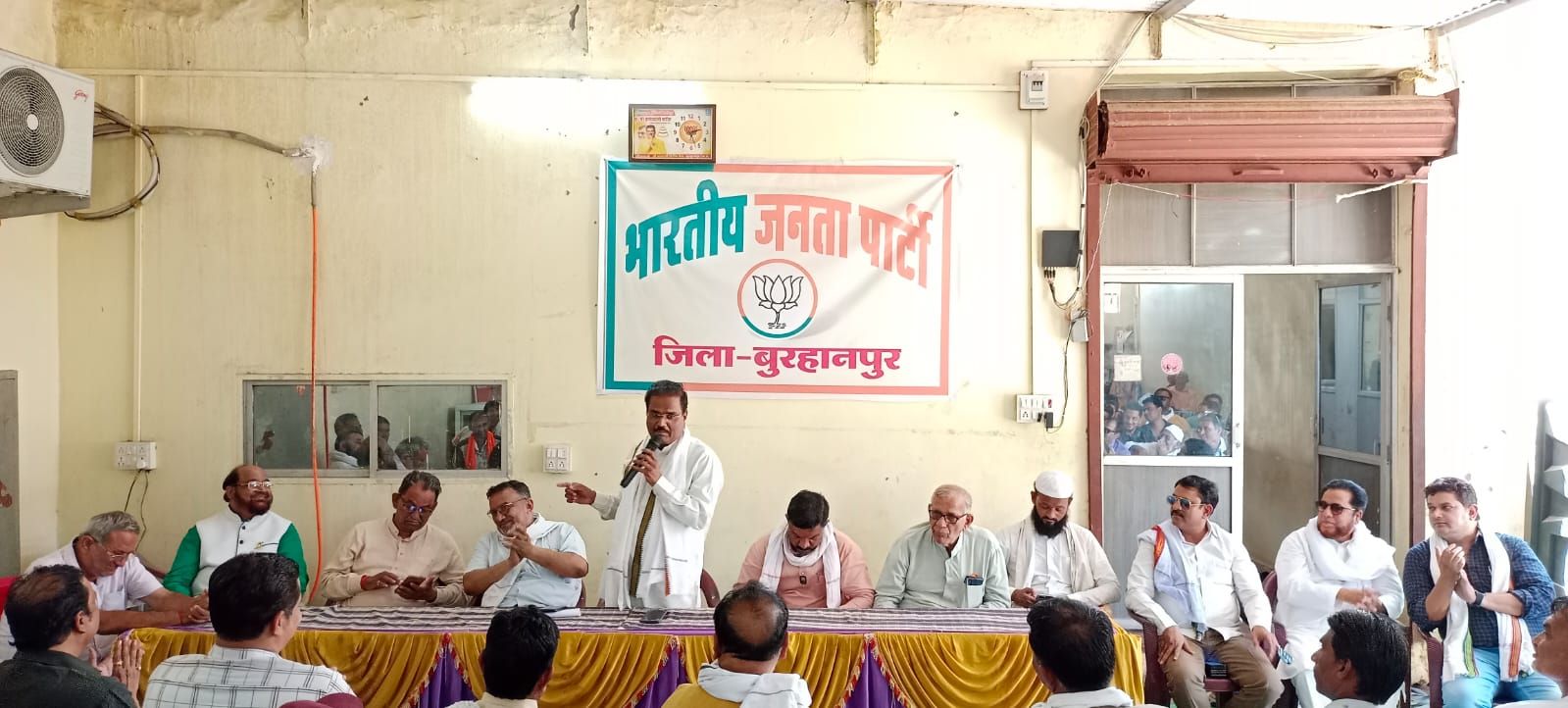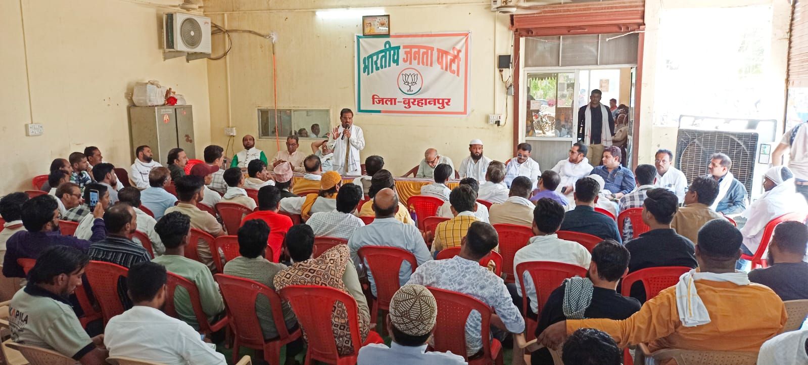 ुरहानपुर। सांसद एवं भाजपा प्रत्याशी ज्ञानेश्वर पाटील के कार्यालय पर अल्पसंख्यक मोर्चे की कार्यशाला संपन्न हुई। इस कार्यशाला को भाजपा जिला अध्यक्ष डॉ मनोज माने जी ने सम्बोधित किया। उन्होन ने भाजपा को जिताने और मोदी सरकार को तीसरी बार पुन: सरकार बनाने में प्राणपन से जुट जाने की बात कही। इस दौरान अल्पसंख्यक नेता अधिवक्त्ता शाकीर साहब सहित अन्य ने संबोधित किया।