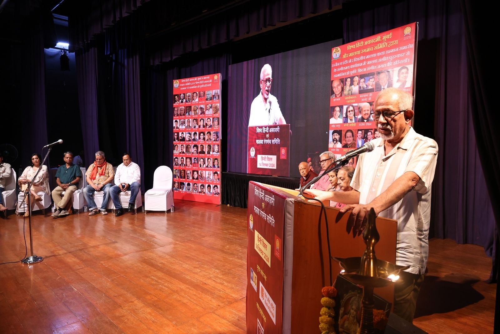 ुंबई। जुहु स्थित इस्कॉन मंदिर परिसर के ऑडिटोरियम में हिंदी दिवस पर विश्व हिन्दी अकादमी द्वारा आयोजित समारोह का शुभारंभ लेखक पत्रकार पंडित मुस्तफा आरिफ सहित अनेक सम्मानित हस्तियो ने दीप प्रज्वलित कर किया। इस अवसर पर उन्हें ३०वें हिंदी सेवा सम्मान से नवाज़ा गया। समारोह में फिल्म निर्देशक राज़ शांडिल्य, फिल्म पंचायत के निर्माता लेखक चंदन कुमार और निर्माता निर्देशक राजन शाही का विश्व अकादमी सम्मान से अभिनंदन किया गया।