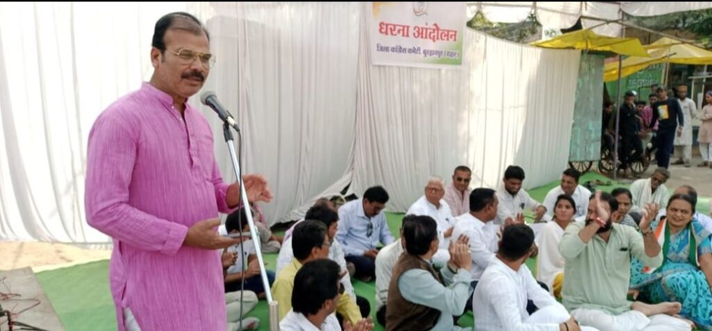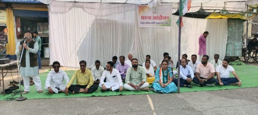मध्य प्रदेश विधानसभा के विजयपुर में उपचुनाव के दौरान हिंसक गतिविधियों और बाबा साहब अंबेडकर की प्रतिमा तोड़ने वालों के विरुद्ध कार्रवाई की मांग को लेकर बुरहानपुर कांग्रेस ने बाबा साहब की प्रतिमा स्थल के पास धरना प्रदर्शन किया। धरना प्रदर्शन में कांग्रेस के नेताओं ने कहा कि भारतीय जनता पार्टी की आस्था संवैधानिक मूल्यों में नहीं है भाजपा के लिए चुनाव मात्र सत्ता हासिल करने का जरिया है। भाजपा हमेशा दलित आदिवासी हितेषी होने का आडंबर करती रही है लेकिन विजयपुर उपचुनाव में भाजपा का असली चेहरा जनता के सामने है। विजयपुर उपचुनाव में अपनी संभावित हार को देखते हुए भारतीय जनता पार्टी ने मतदाताओं को बलपूर्वक मताधिकार से वंचित किया और यहां तक की दलित आदिवासियों के साथ मारपीट की और उनके खेत खलिहान में आग लगा दी, और अराजकता और भय का माहौल बना दिया। यह इन घटनाओं को सिर्फ इसलिए भाजपाइयों ने अंजाम दिया क्योंकि विजयपुर के मतदाताओं ने भाजपा को समर्थन नहीं दिया। इसका प्रतिकार भाजपाइयों ने मतदाताओं के साथ हिंसा कर लिया। इस उप चुनाव में भारतीय जनता पार्टी ने सत्ता का खुलकर दुरुपयोग किया ।इसलिए कांग्रेस पार्टी ने राज्यपाल के नाम तहसीलदार को ज्ञापन सौंप कर विजयपुर मतदान के दौरान हुई अराजकता और हिंसक गतिविधियों के आरोपियों पर कार्रवाई की मांग की। धरना प्रदर्शन को पूर्व विधायक हमीद कई एडवोकेट की शेख इंद्रसेन देशमुख हेमंत पाटील शेख रुस्तम निखिल खंडेलवाल देवेश्वर सिंह सरिता भगत ने संबोधित किया। धरना प्रदर्शन में मध्य प्रदेश कांग्रेस कमेटी के उपाध्यक्ष और पूर्व विधायक हमीद काजी प्रदेश महासचिव और पूर्व विधायक सुरेंद्र सिंह ठाकुर प्रदेश सह सचिव इंद्रसेन देशमुख नगर निगम उप नेता प्रतिपक्ष एडवोकेट उबेद शेख, पार्षद हमीद डायमंड इनाम अंसारी मोहम्मद हफीज हेमंत पाटील ओबेदुल्ला सचिन व्यास सरिता भगत मीनाक्षी महाजन योगिता इंगले संजय चौकसे आशीष भगत निखिल खंडेलवाल देवेश्वर सिंह शहजाद नूर पूर्व पार्षद अमजद खान अरुण जोशी साजिद अंसारी असलम खान जाकिर अंसारी रफीक मंसूरी जावेद बागबान मौजूद थे।