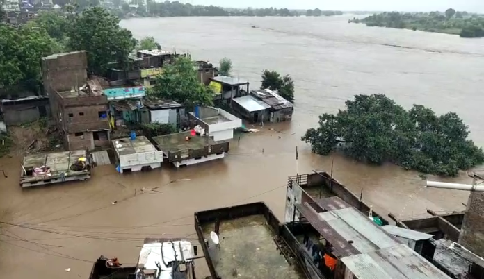 जिले में लगातार हो रही तेज बारिश के कारण शहर सहित ग्रामीण अंचलों में भी नदी नाले उफान पर चल रहे हैं सूर्यपुत्र ताप्ती नदी की बात करें तो ताप्ती नदी इस वक्त खतरे के निशान से 5 फीट ऊपर बह रही है ताप्ती नदी के राजघाट सत्य यार घाट, पीपालघाट, नगरी घाट शाहित सभी घाट जल मग्न हो गए हैं जिसको देखते हुए जिला प्रशासन ने नदी नालों के किनारे पुलिस के जवान एनडीआरएफ की टीम होमगार्ड के जवानों को तैनात कर दिया है जो नदी नालों के किनारे जाने वालों को रोक कर घर पहुंच रहे हैं गौरतलाप है कि ताप्ती नदी में तीसरी बार बाढ़ आई है पहले भी दो बार पानी बड़ा लेकिन इस वक्त जो पानी बड़ा इससे पहले इतना पानी नहीं पड़ा था साल का सबसे बड़ा पूर् इस वक्त ताप्ती नदी में आया है जिसके कारण नदी का जलस्तर लगातार बढ़ रहा है नदी के राजघाट की सीमा लंगटे हुए पानी शहर की ढाल की ओर पहुंच गया है जिसके चलते लगातार जिला प्रशासन का वरिष्ठ अधिकारी बाढ़ को लेकर नदी नालों पर नजर रखे हुए हैं